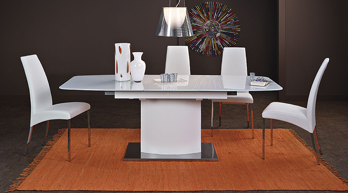 allungabile con il piano in vetro temperato dalla forma a botte. Questo
